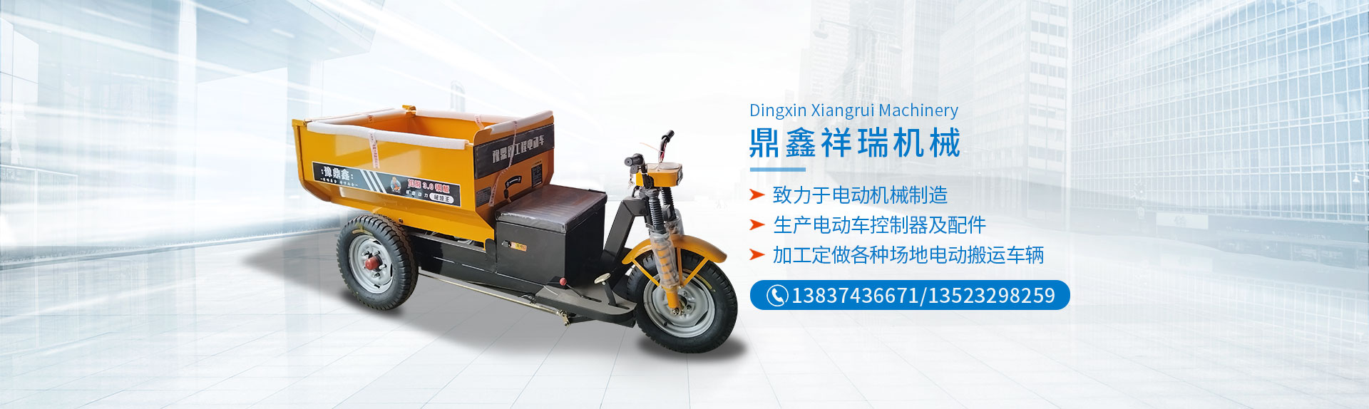 电动工程自卸车长葛市鼎鑫祥瑞机械制造有限公司(原长葛市鑫洋机械配件厂)位于河南省长葛市董村科技工业区,东邻220省道, 西邻G4京港澳高速,距新郑机场35公里,地理位置比较优越,交通便利。 鼎鑫祥瑞机械制造有限公司是一家从事电动机械制造的厂家,现有一支素质很高的技术队伍,拥有较先进的生产,检测设备和科学的管理体系,为高质量的产品提供了可靠的保证。 电动工程自卸车主要产品有,1T电动叉车,2T电动叉车,1T,2T,3T,5T,电动矿车,载重王系列货运电动三轮车,窑场电动专用车,木板厂专用电动车,陶瓷电动搬运车,混凝土电动搬运车,加工定做各种场地电动搬运车辆。本公司生产电动车控制器,电动车配件及电器,各种车辆冲压件,开发生产研制电动车后桥,各种车辆刹车拉杆,U型螺栓,加工定做异型U型螺栓。产品分别通过行业检测及配套主机厂认可,深受广大用户青睐。 欢迎各界人士前来参观指导工作,如果您对我们的产品感兴趣或者有任何的疑问,您可以直接给我们留言或直接与我们联络,并提出宝贵的意见,我们将在收到您的信息后,会及时与您联络。 本公司有专业的整机配件供应部,供应部地址:长葛市金桥农机城1区4排5号 电话...