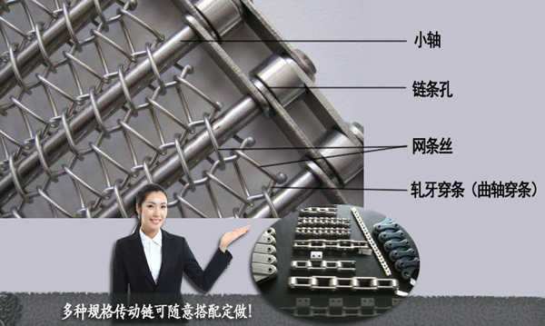 不銹鋼輸送帶主要采用不銹鋼加工生產而成, 因而其強度高、伸縮性小,不易變形、衛生、易保養,而且具有透氣性好、耐高溫、耐腐蝕、運轉靈活,使用壽命長等特征。不銹鋼輸送帶集中了金屬絲編織網帶的各種優點,由于具有彎曲較深的串條,使各個螺旋盤條的位置得到正確的定位,才使網帶表面不會變形,主要用于機械流水作業。